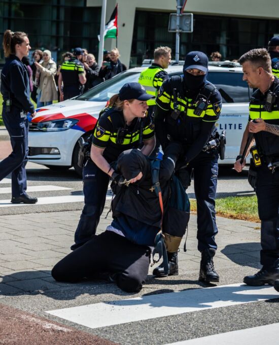 De politie schaalde flink op tijdens de demonstratie van 7 mei, waarbij een student door een politiehond in het been gebeten werd. Dat gebeurde na een melding vanuit de universiteit dat een ‘grote groep demonstranten’ met geweld het Berchmanianum had betreden. Dat staat in het onderzoeksrapport over die dag van Bureau Berenschot. Wat er precies is voorgevallen in het bestuursgebouw blijft echter onduidelijk.
