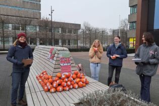 26 januari 2026 Met gratis pompoenen op het Erasmusplein vragen actiegroepen aandacht voor veganistische catering