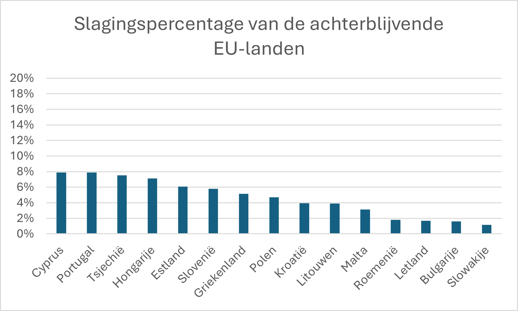 In bijvoorbeeld Griekenland, Tsjechië en Polen is de situatie verbeterd. De afgelopen jaren lag het slagingspercentage van deze drie tussen de acht en tien procent. In 2007-2011 was dat nog drie procent of minder, blijkt uit ERC-cijfers die tot 2007 teruggaan.