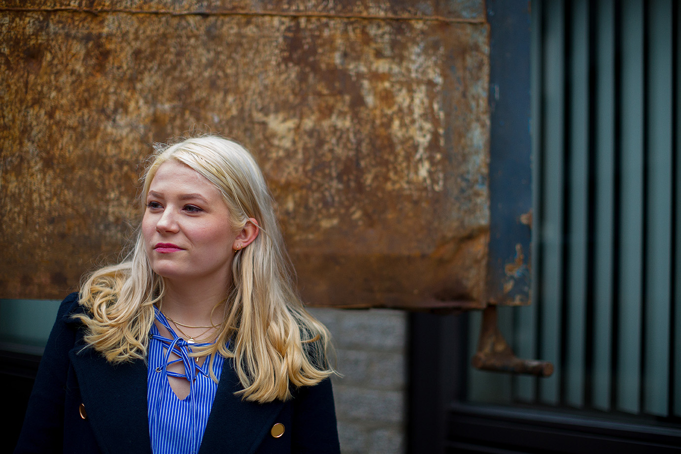 Lynn Leeneman: ‘Voor de managementfaculteit maak ik vlogs over de Thomas van Aquinostraat. Zo heb ik het straatje echt op een andere manier leren kennen. Samen met mijn medevlogger, student Florian Duclos, ben ik op veel plekken geweest waar je anders niet komt – tot bovenop de daken. In de tweeënhalf jaar dat ik hier studeer, ben ik niet gehecht geraakt aan de TvA. Het zijn niet de mooiste gebouwen. Toch was het altijd gezellig – vooral in de ruimte waar verschillende studieverenigingen bij elkaar zaten. Je kwam veel in contact met studenten van andere studies. Al was het maar om gebruik te maken van het tosti-apparaat bij de buren. Als vlogger heb ik veel geleerd over de TvA. Bijvoorbeeld dat het voor docenten irritant is als het treintje met containers voorbij rijdt. Dat maakt zo’n herrie op de straatstenen dat colleges dan een halve minuut stil liggen. Er is van alles geprobeerd om dat op te lossen, zoals luchtbanden onder de containers, maar die gingen om de haverklap lek.’