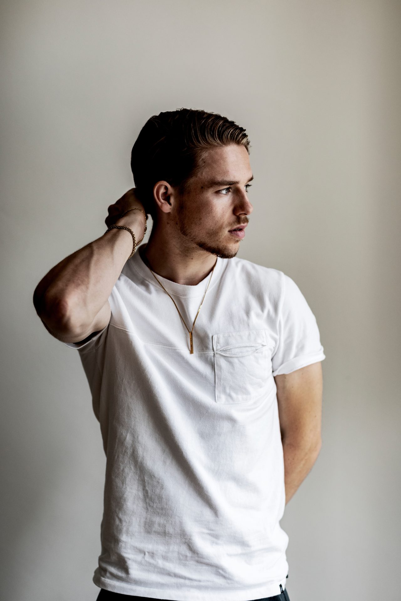 We’re in Amsterdam, in a light-filled apartment on the Amstel that he recently moved into with his girlfriend Carola Kirschbaum. Carola is a photo model, works in fashion and, like Weijland, she has her own YouTube channel. The lounge sofa that we’re sitting on has been sponsored by an online home furnishing shop and was named after the Radboud alumnus. That’s how things go in the world of Koen and Carola.