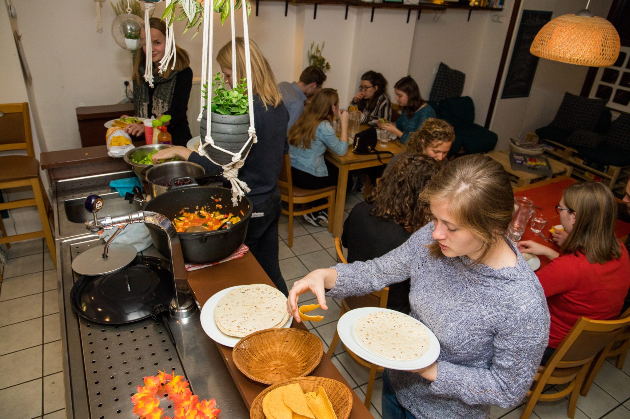 And yet the religious community continues to care for those in need within the Nijmegen student community. At VGSN and KSN, the circles offer a safety net for students who are experiencing problems, explain Rijs and Holtrop. And then there’s student café Perplex. Every Tuesday night, approximately twenty students gather in the building of religious association De Verwondering for a free meal, prepared by the Perplex team. ‘All students are welcome, also those with a different or no religious background,’ explains initiator Denise Kluit (26).