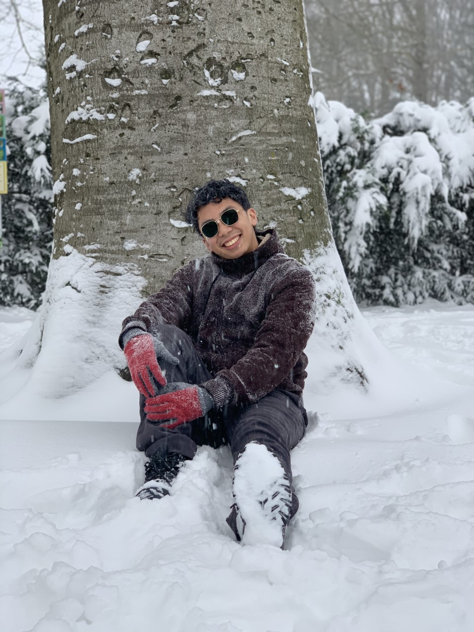 A Dutch friend that he met during one of his first online courses picked him up from the airport and helped out getting his groceries while he was in quarantine. Just before the big snowfall Pierce was allowed to go outside. ‘I’ve even cycled through the snow’, he laughs. He has only seen the campus from the window of his room at Hoogeveldt, and online of course, during the virtual lab tour.