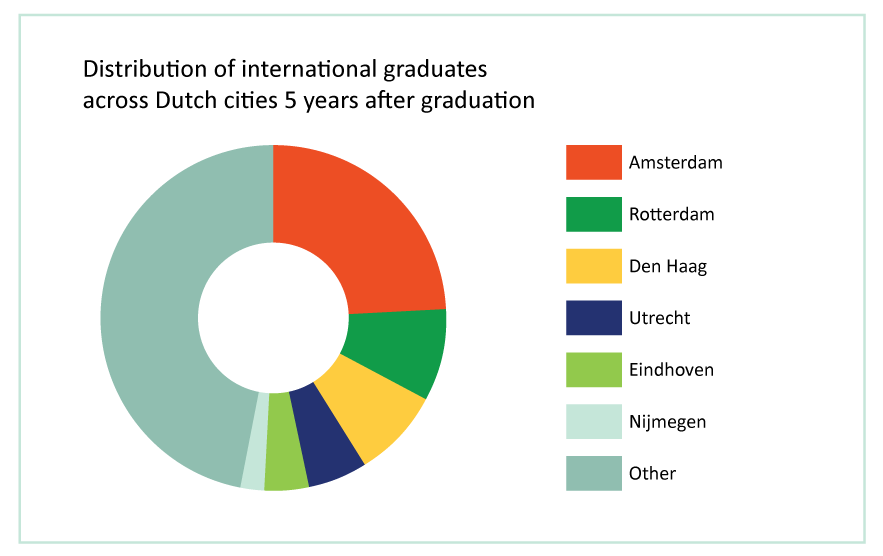 Where internationals settle seems to depend on the work climate. For Joris Knoben, Professor of Business Economics in Nijmegen and expert on the relationship between companies and their environment, these figures confirm what he sees among his own students. ‘Most people migrate to the Randstad. That’s where the interesting employers are: large internationally oriented companies. Recent graduates are unattached and easily relocate to follow opportunities elsewhere. Incidentally, this is not only true of internationals; our Dutch graduates also often relocate to the Randstad.’