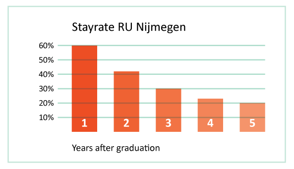 Five years after graduation the vast majority no longer lives in Nijmegen