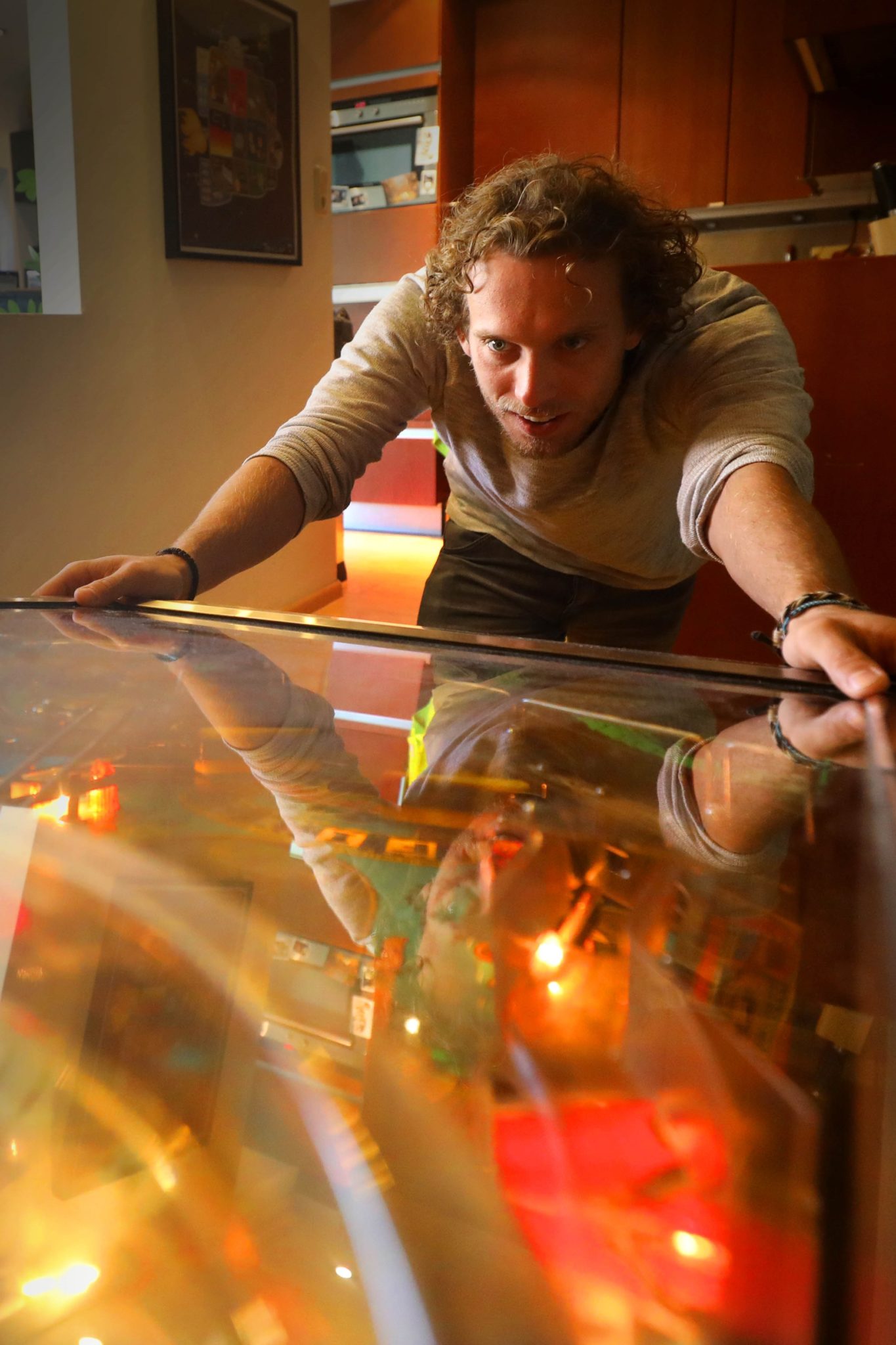 Smit is a busy young man. He talks fast, paces up and down in his black All Stars. He did not move to Los Angeles – although he did go there eight times for consultations – but kept his apartment in Nijmegen. ‘I love this city.’ His dark apartment on the ground floor of an old townhouse has a living-room with an open kitchen, a sleeping area behind a wall, and the three computers that form his studio. He picks up a Rubik’s cube from the mantelshelf and starts turning it in his hands. This is what he does for relaxation, games without zeroes and ones. It is also why he enjoys playing the two pinball machines next to the couch. ‘It’s great stuff, all physics!’ Gravity pulls the ball down, the mechanism does the rest. In his cupboard he also has Risk and technical Lego. A beautifully bound edition of Grimms’ fairy tales and novels by Stephen King. ‘That’s for inspiration.’ The Lonely Planet guide to Australia and New Zealand lies on top of the pile. In December 2016 the movie was completed, so he could finally do some travelling.