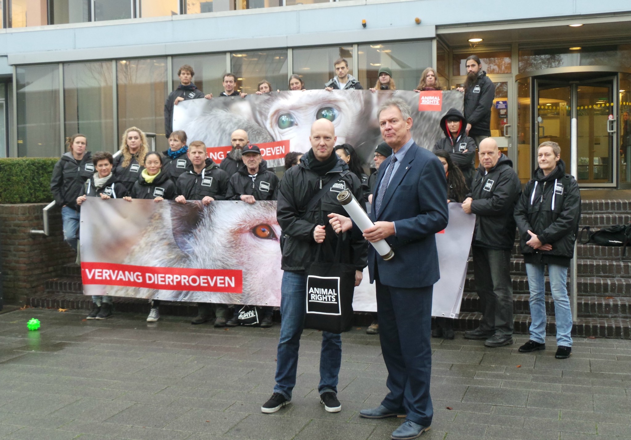 Gun de laatste twee apen van de Radboud Universiteit een waardig leven na hun bestaan als proefdier. Met deze boodschap heeft Stichting Animal Rights vandaag een petitie met meer dan 25.000 handtekeningen overhandigd aan rector Han van Krieken. Van Krieken zegt al in contact te zijn met stichting AAP om te kijken of de resusapen geschikt zijn om naar een opvang te kunnen herplaatsen.