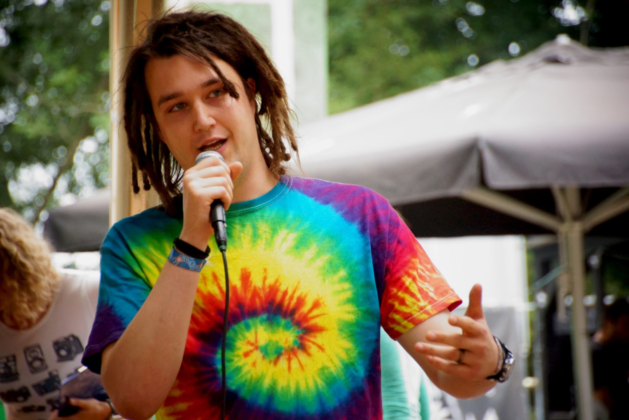 Marc van Oostendorp (links) op het podium met rapper Fresku. Foto: Jelmer de Haas