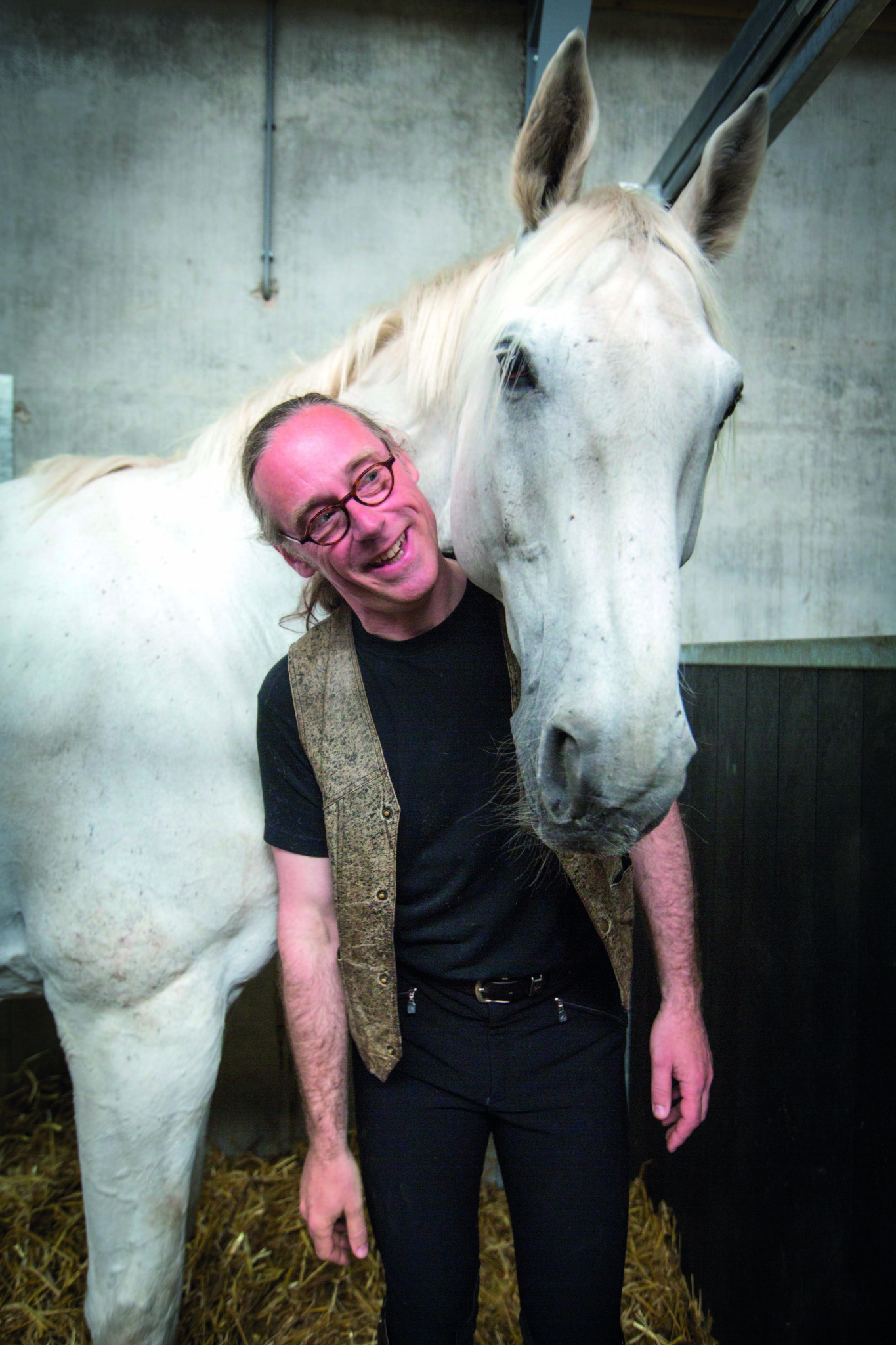 ‘Ik ben de laatste drie jaar milder geworden voor mezelf, ik leefde te veel in mijn hoofd, en dat kan niet als je met paarden omgaat. Die beesten hebben een bizar goede sociale intelligentie: als je de stal inloopt voelen ze je stemming en als je gestrest bent, weet je zeker dat je gedonder krijgt met je paard. Die pikt dat niet. Je móet je paard met aandacht en geduld benaderen, ze worden niet voor niks ingezet bij therapieën om tot rust te komen.’