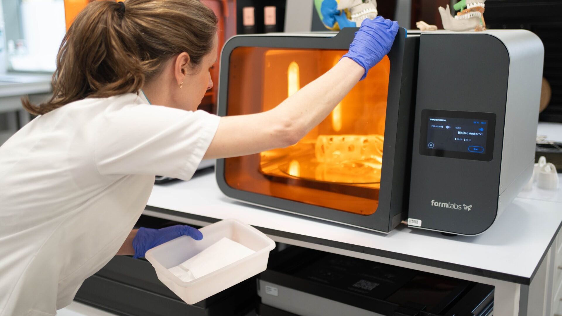 Laura van Ginkel, technisch geneeskundige in het 3D-lab, legt uit hoe ze de Oekraïense patiënt hebben behandeld: ‘Met een scan hebben we een template gemaakt van zijn gezonde arm. Op basis daarvan hebben wij een pin gemaakt die we in zijn gewonde arm hebben gezet.’