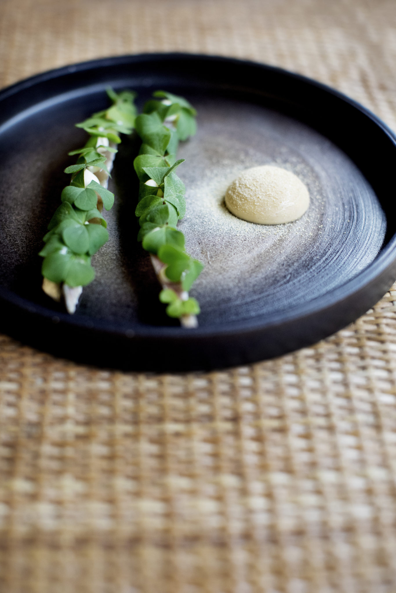 Gepekelde makreel met bloemkoolpuree, klaverzuring en walnotenmiso