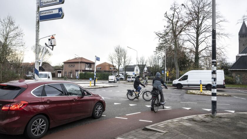 Een van de gevaarlijkste kruispunten van Nijmegen ligt op de campus. Er gebeuren regelmatig ongelukken en nog veel meer bijna-ongelukken. Maar volgend jaar wordt het veiliger. Het kruispunt Heyendaalseweg-Houtlaan-Kwekerijweg verandert in een ovatonde met een vrijliggend fietspad.