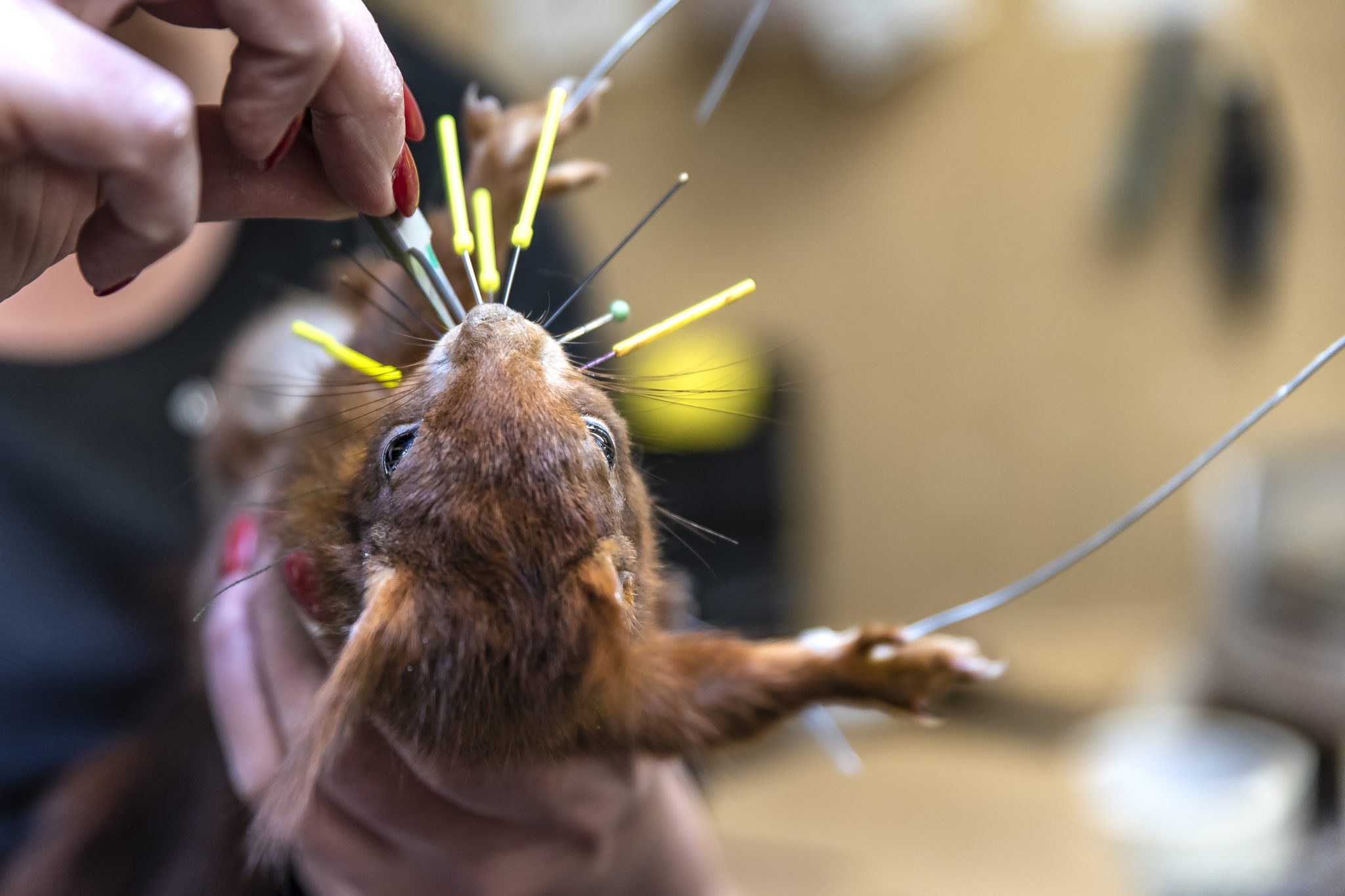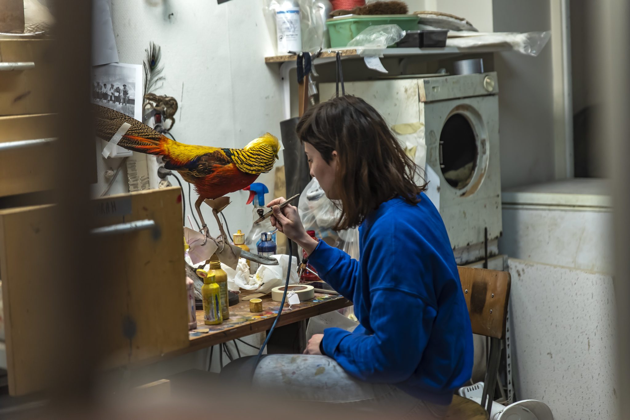 Naphausen toont het atelier achter de winkel waar de preparateurs aan het werk zijn. Terwijl de laatste hand wordt gelegd aan een eekhoorn, vertelt ze dat ze zelf ook weleens een dier heeft opgezet. ‘Maar als ik daar geen begeleiding bij krijg, wordt het helemaal niks.’
