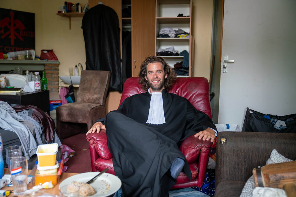 Eerst maar eens over dat dispuut. Hoe kwam hij daar nou bij? ‘Heel simpel’, zegt hij. ‘Ik reageerde op een kamer op Kamernet.nl. Pas op de kijkavond vertelden de jongens dat de nieuwe huisgenoot lid zou moeten worden van hun dispuut. Zelfs van het woord had ik nog nooit gehoord. Ze zeiden dat ze veel activiteiten deden samen. Dat leek me wel gezellig.’