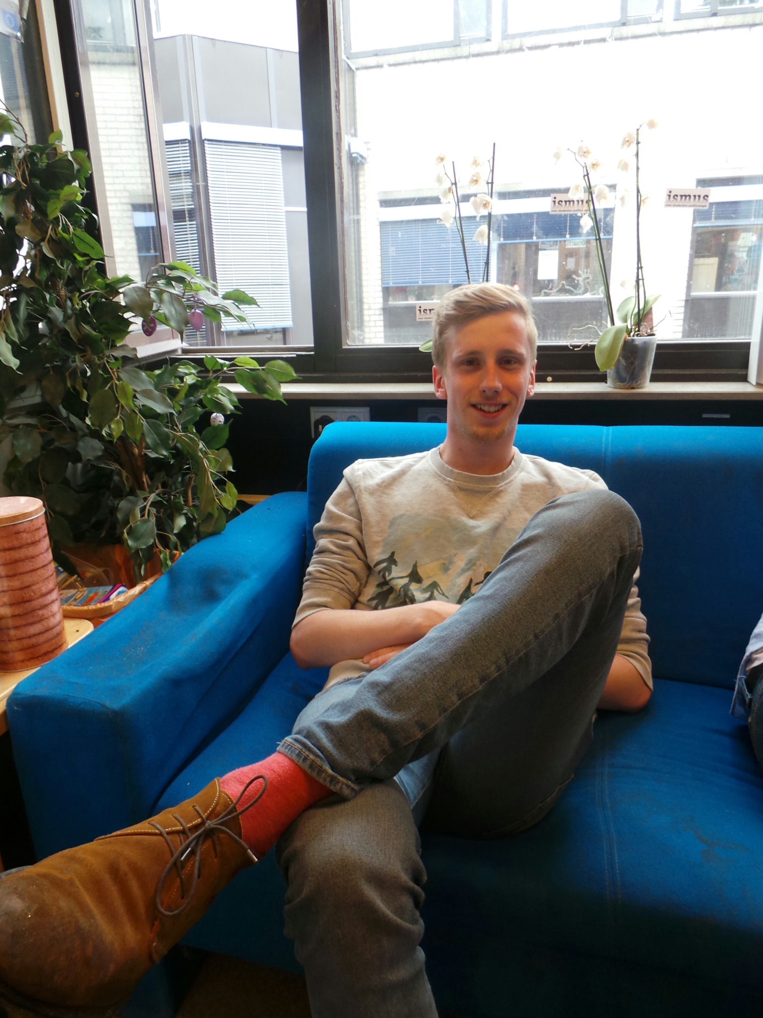 Jacco Ressing (18, economie), stemt niet: ‘Ik ga niet stemmen, het boeit me niet. Ik geloof niet dat als ik na de zomer terugkom er werkelijk veranderingen zijn doorgevoerd.’ / Auke Roos