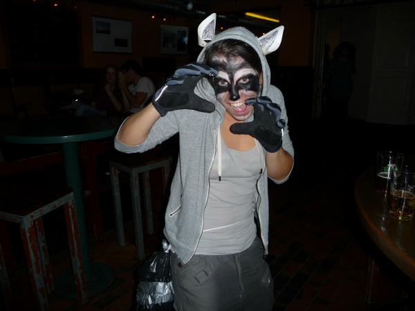 Zo niet Steffi Brandstetter. Licht aangeschoten waggelt de Oostenrijkse wasbeer door de kroeg. Of ze het naar haar zin heeft in Nijmegen? Jazeker! ‘The parties.. I lóóóóve them! There is so much Erasmus student. EVERYONE is making party!’ Elders leunt de Congolees Steven Kamashi rustig tegen een tafel. Engels spreken blijkt onnodig. Steven is nu één jaar in Nederland en spreekt onze taal vloeiend. Moeiteloos steekt hij een verhaal af over Messi, globalisering, leervermogen en esthetiek. Hij is blij dat hij naar Nijmegen is gekomen: hier kan hij echt zichzelf zijn. Sanne Handgraaf is politiek commissaris van het KIS en organisator van het feest. Ze hoopt dat haar opzet is geslaagd. ‘We zijn als koepel heel erg bezig met het stimuleren van internationalisering. We proberen met activiteiten als deze de Nijmeegse student naar het buitenland te krijgen. En we zorgen natuurlijk dat de verschillende studentenorganisaties onder de aandacht komen.’ Of er op deze donderdagavond veel Nijmeegse studenten geïnspireerd zijn geraakt om in het buitenland te gaan studeren is de vraag, maar gezellig is het in ieder geval. De katten, tijgers, konijnen, wasberen en panda’s gaan door tot in de kleine uurtjes. Met het Dierendagfeest is de Wil Weg Week feestelijk afgesloten. Coördinator Maaike van Gerven blikt met een tevreden gevoel terug. ‘Volgens mij was het heel geslaagd. Het is afwachten hoeveel studenten er straks daadwerkelijk naar het buitenland gaan, maar het is in ieder geval gelukt ze te enthousiasmeren.’ / tekst en foto Joep Sistermanns