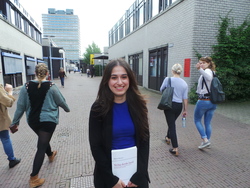 Sulaf Rashid, student Nederlands recht: ‘De buitenkant heeft nog wel iets, het idee van een straatje op de campus is prima. Maar de binnenkant van de gebouwen is net een bunker. Ik heb het nooit fijn gevonden om hier les te krijgen.’