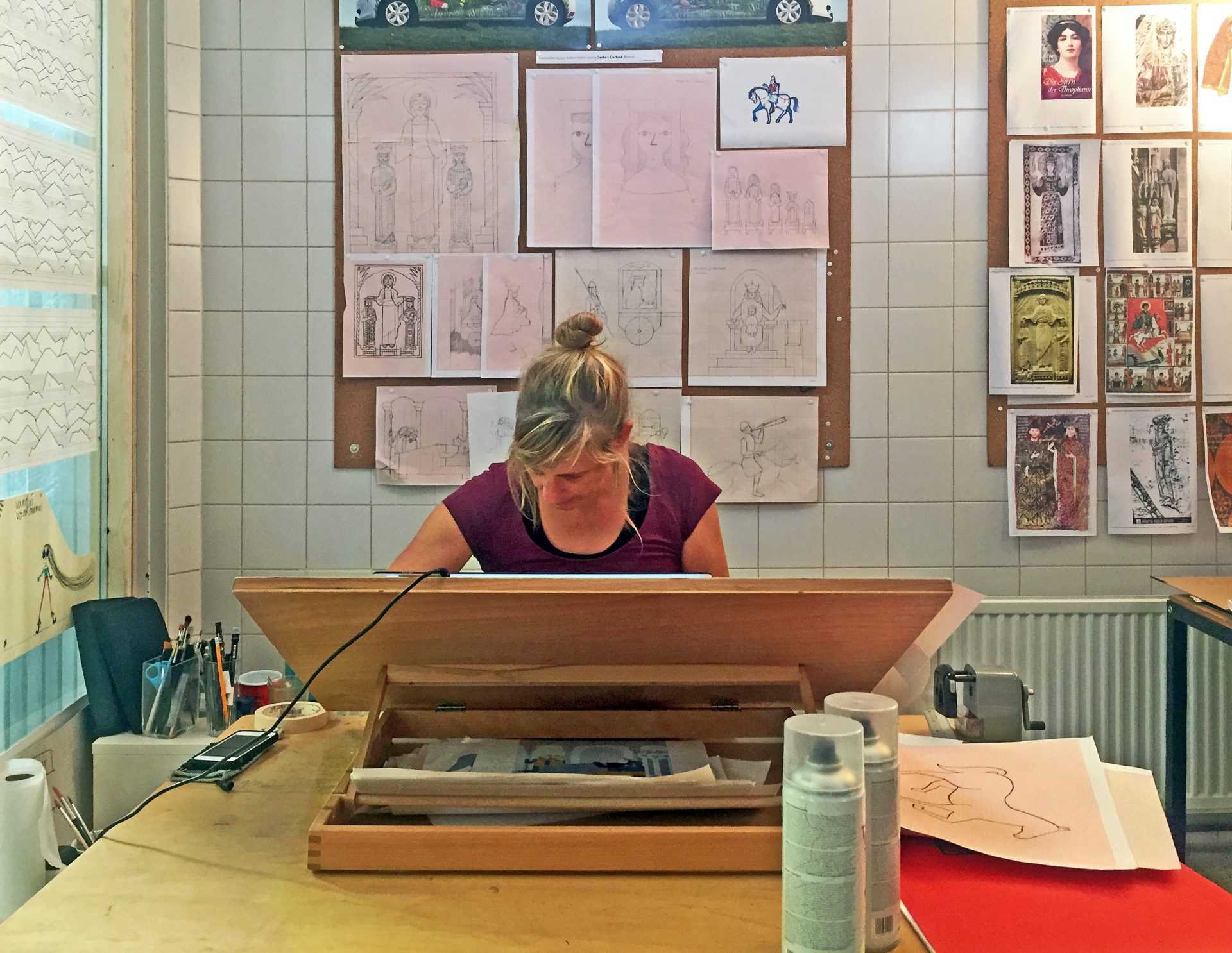 ‘De schildering bevat heel veel details, waardoor je telkens weer iets nieuws leert. Theophanu heeft bijvoorbeeld de vork geïntroduceerd. Die staat dus ook op het schilderij.’ Die toegankelijke manier van leren is een van de redenen waarom de Letterenfaculteit zich heeft aangesloten bij het project. ‘De grote muurschilderingen passen precies in het idee van wetenschap op een laagdrempelige manier naar de mensen brengen. Ze zijn voor iedereen zichtbaar en mensen kunnen vervolgens online de geschiedenis erachter opzoeken’, zegt Jussen.
