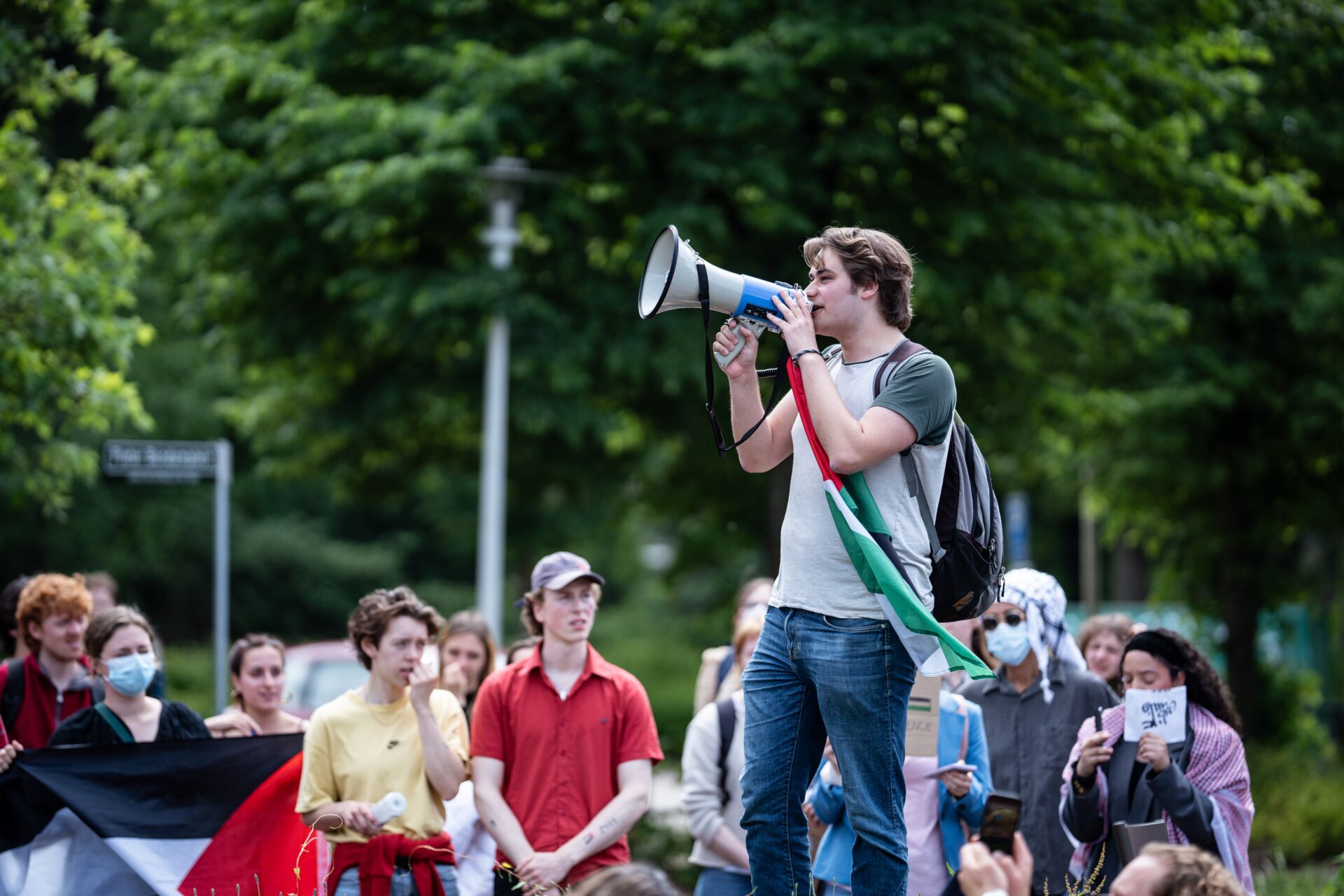‘Je ziet dat het maatschappelijke beeld is gekanteld: het is niet meer controversieel om tegen het beleid van Israël te zijn’, voegt Dahm daar aan toe. ‘Actievoeren voor Palestina wordt breder gedragen. Je ziet nu dat zelfs partijen als D66 zich achter de demonstraties scharen, terwijl in 2024 de partijen zich niet of nauwelijks openlijk uitlieten. Daardoor neemt de interesse in actievoeren af: mensen zien het als een ‘normale vorm’ van politiek bedrijven, niet als meer knokken voor een gezamenlijk doel. Dat laatste zouden wij graag terugzien. Want laat een ding duidelijk zijn: de situatie in Palestina is nog steeds onverminderd erg.’