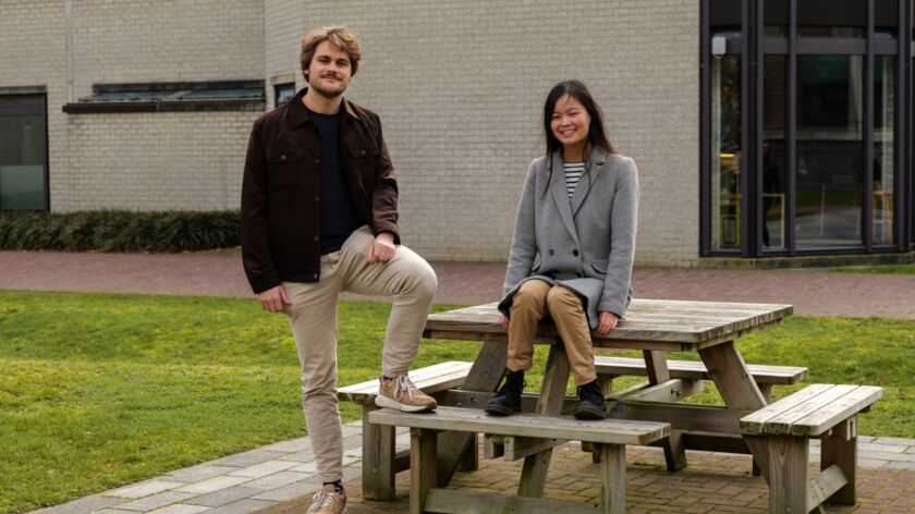 Terwijl het geluid van de demonstraties in de verte nog zacht te horen is, zitten Ties van den Bogaard (voormalig filosofiestudent – partijbestuur) en Ru Dahm (student data science – nummer 6 op de lijst) aan de picknicktafels op het grasveld naast het Maria Montessorigebouw. Hier stond in 2024 een groot tentenkamp, als steunbetuiging aan Palestina. De missie: het college van bestuur van de universiteit overhalen om banden met Israëlische instellingen door te snijden. Vanuit het kampement werden lezingen, workshops, protestmarsen en gebouwbezettingen georganiseerd.