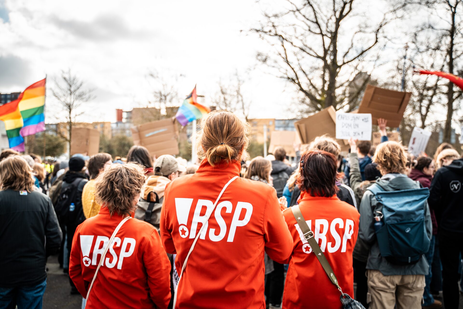 De RSP speelde een sleutelrol bij de totstandkoming van het kampement, vertelt Van den Bogaard. ‘Dat is vanuit de RSP aangezwengeld: denk aan de opbouw, coördinatie en het optrommelen van mensen. De RSP is voortgekomen uit ROOD, de voormalige jongerenbeweging van de SP, en was altijd echt een actiebeweging. Zo waren we daarvoor bezig met demonstraties tegen de krappe woningmarkt, het uitdelen van menstruatieproducten en bij antifascistische acties.’
