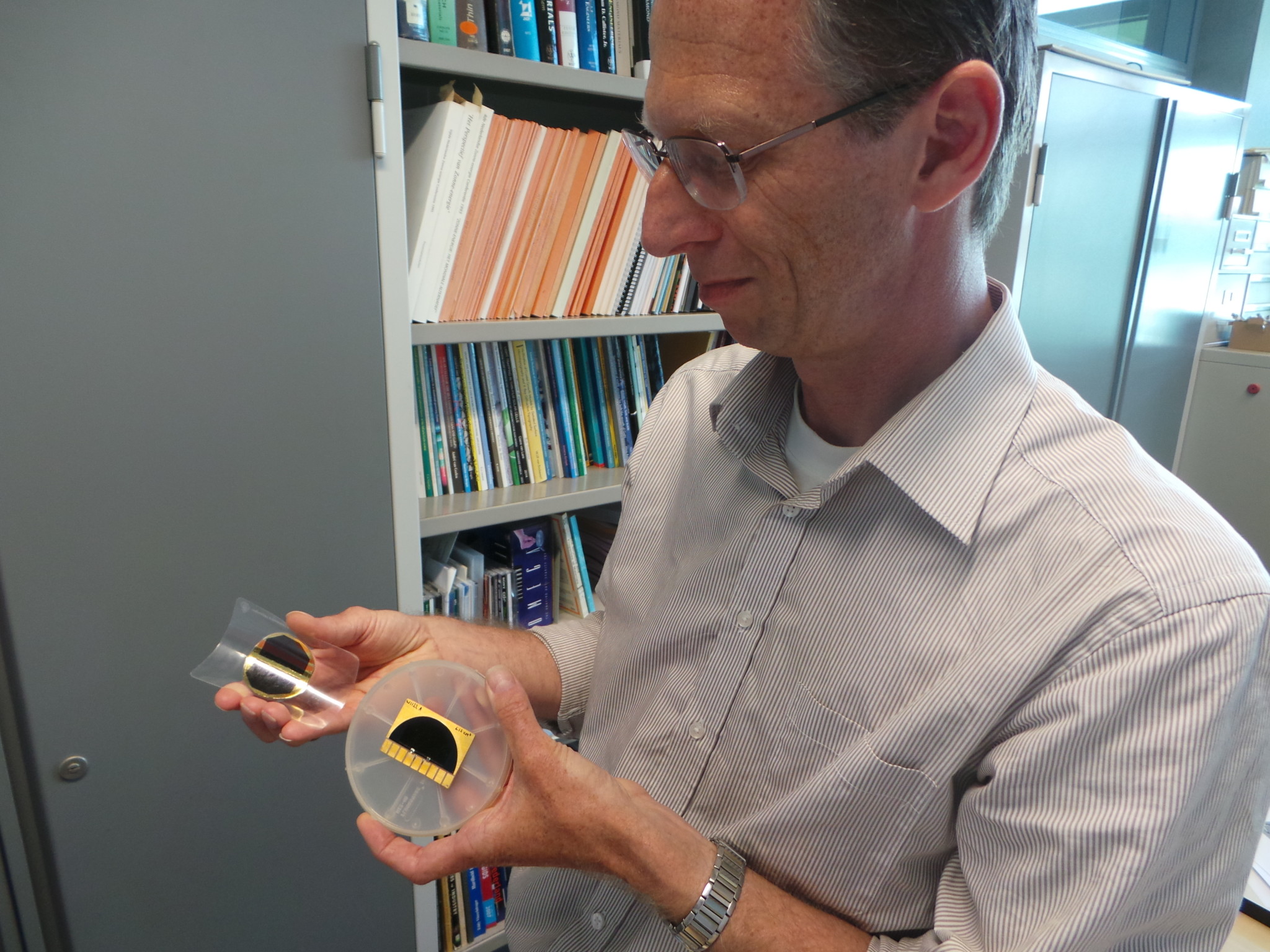 Het lukte Schermer en zijn team niet meteen om een geschikte zonnecel te maken. ‘In de wetenschap gaat het meestal niet allemaal in één keer goed. Ook hier niet. De flexibele zonnecel bleek een stuk minder efficiënt dan de gebruikelijke variant met de harde onderlaag. De afgelopen jaren hebben wij er hard aan gewerkt om de flexibele cel efficiënter te maken. Het is ons nu, na jaren van vallen en opstaan, gelukt de flexibele zonnecel efficiënter te maken dan de originele variant. Hij is ruim honderd keer dunner, en toch beter.’