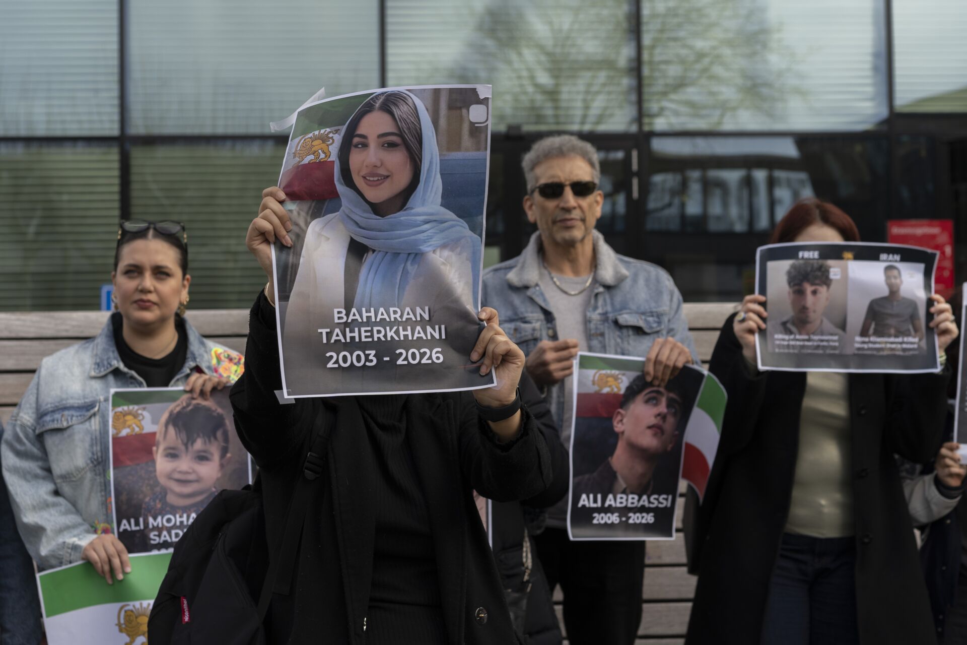 ‘Mensen in Iran hebben al jaren te kampen met inflatie, armoede, corruptie en onderdrukking door het regime’, zegt Radboudonderzoeker Samaneh Khademi. Ze houdt een toespraak voor zo’n twintig demonstranten. Zij hebben zich in de hal van het Erasmusgebouw verzameld om aandacht te vragen voor de situatie in Iran. Op de achtergrond zijn posters opgeplakt met daarop de beeltenissen van overleden en ter dood veroordeelde Iraanse demonstranten.