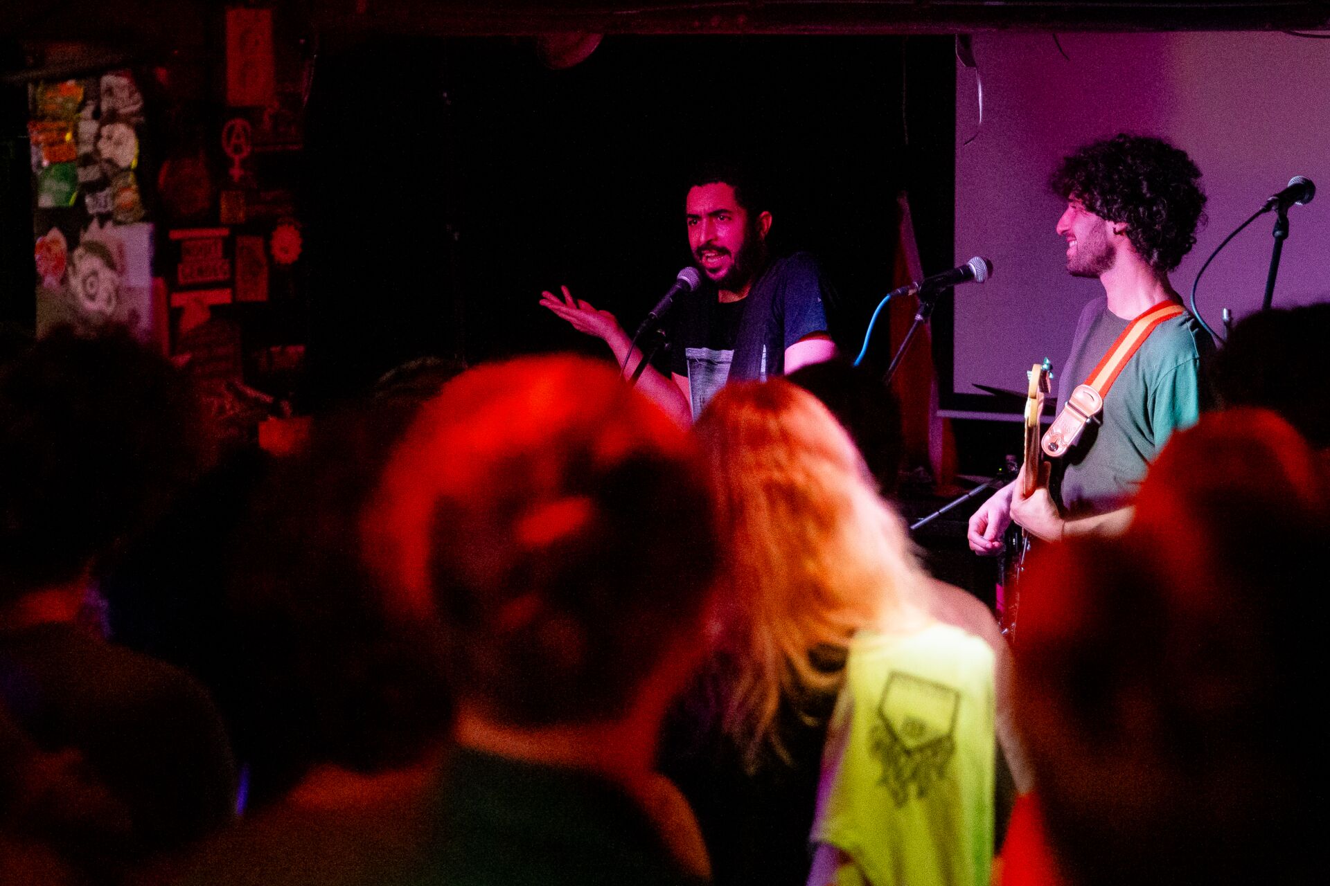 ‘Here’s a list with some shit pizza places in town…’ Frontman Elie El Rassi schreeuwt de namen in de microfoon. ‘Pizza Hut! Domino’s!’ Bij de laatste steekt hij zijn tong uit, gevolgd door een ‘hey hey’ en een ‘woe woe woe’. Het publiek in de donkere kelder danst mee op de muziek.