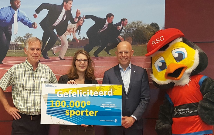 Met het tiende lustrum nog vers in het geheugen werd vandaag weer taart aangesneden in het sportcafé. Het Radboud Sportcentrum (RSC) heeft met 100.000 unieke sportkaarthouders een mijlpaal bereikt. Voorzitter van het college van bestuur Daniël Wigboldus bij de huldiging vanochtend: ‘Er wordt constant hard gewerkt om mee te gaan met de tijd.’