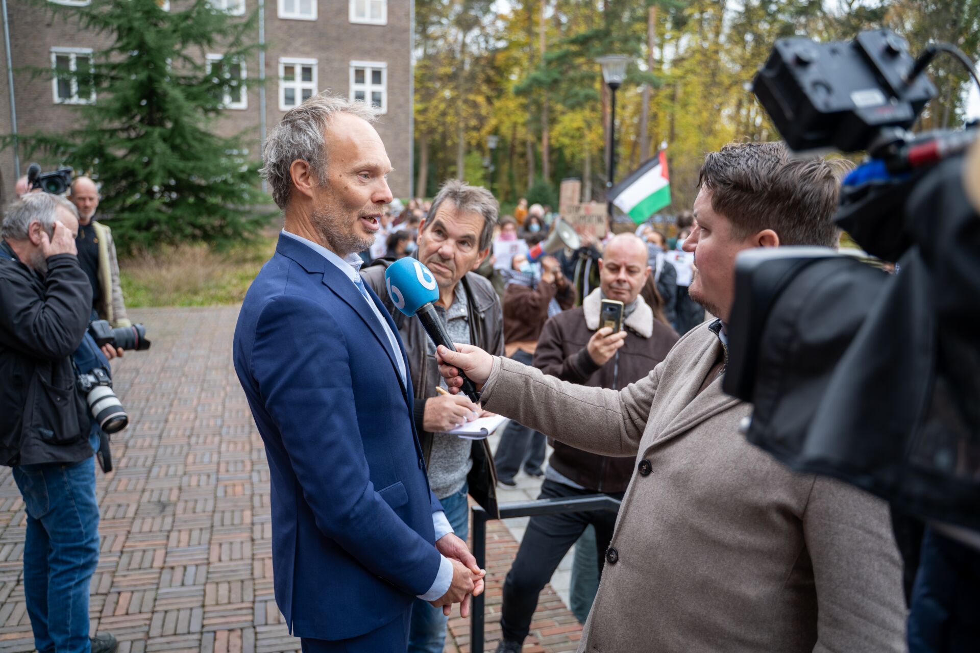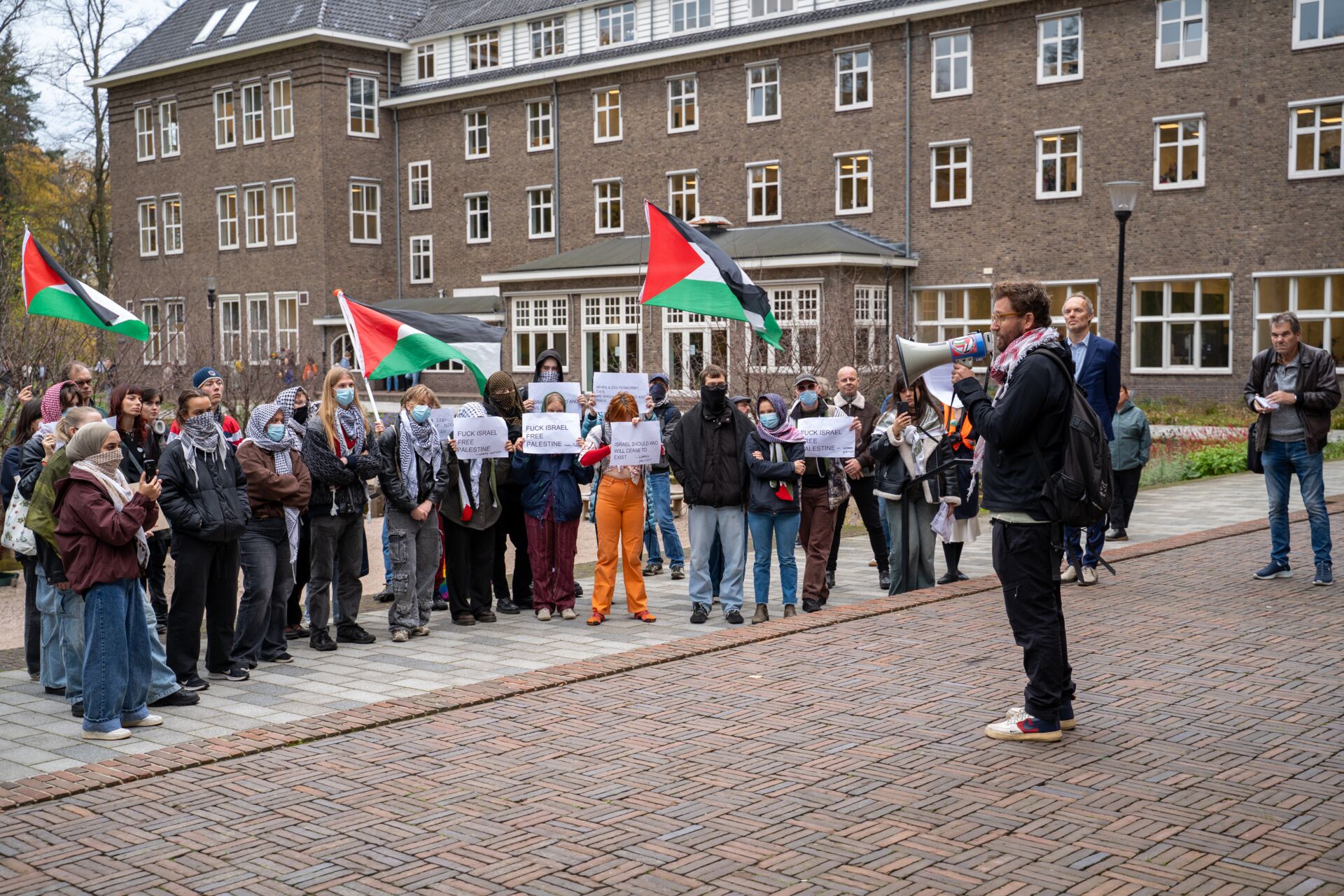 Het protest van vanmiddag is een steundemonstratie voor de uitgesproken pro-Palestijnse activist en docent Harry Pettit. Die maakte afgelopen maandag bekend te vertrekken bij de Radboud Universiteit, nadat hij naar eigen zeggen onder druk werd gezet om zijn toon te matigen of ontslagen te worden.