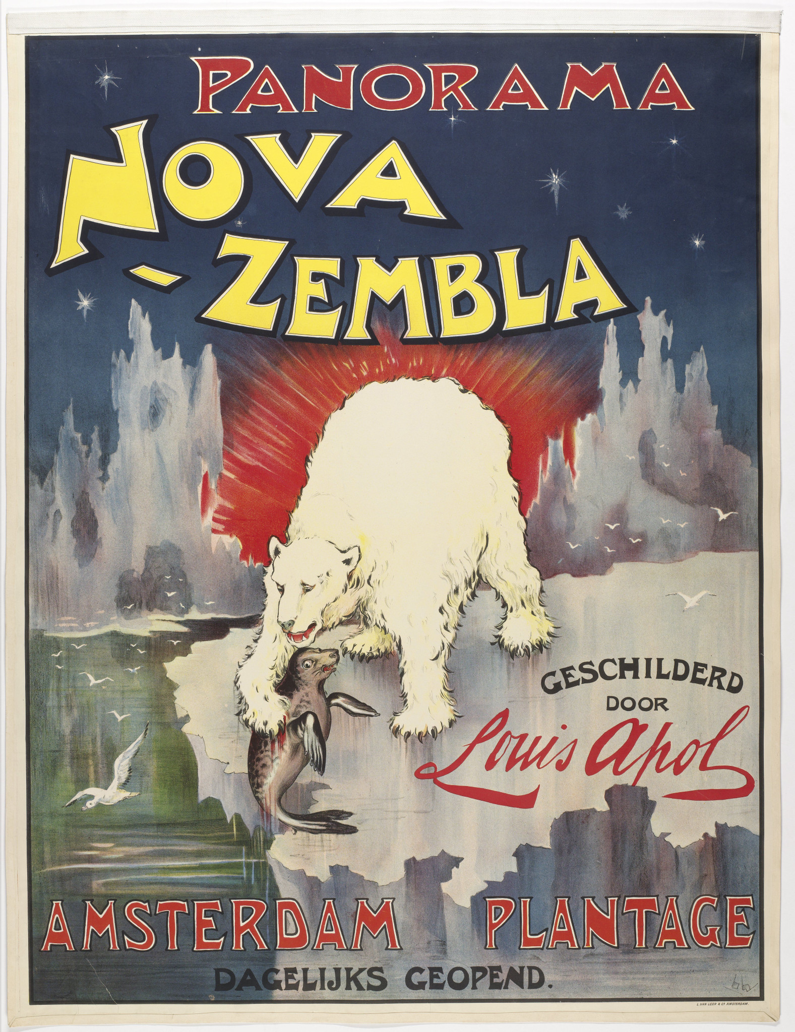 In de winter van 2016 bezocht ik de tentoonstelling Echte Winters in het Teylers Museum in Haarlem, en werd midscheeps geraakt door het eerste beeld dat zich aandiende. Het tekstbordje leert dat ik ben getroffen door Winterlandschap van Louis Apol (rond 1880). Nooit van gehoord, maar ik sluit de goede man meteen in mijn hart. In de kleine maar fijne expositie stuit ik even later op een ander werk van Apol, een schets dit keer: een fragment van zijn panorama Nova Zembla. Prachtig, ik ben verzot op panoramaschilderingen, dus hier komen twee liefdes samen. Maar het tekstblokje bij die schets dient een klap toe: het panorama van Apol blijkt nergens meer te vinden. Kwijt? Vernietigd? In elk geval ‘verloren geraakt’. Veel heb ik tot nu toe niet mogen betekenen voor de kunstgeschiedenis, en eindelijk kan ik iets doen. Ik besluit op zoek te gaan naar het verloren panorama.